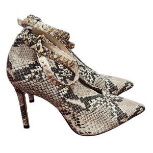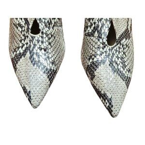 Black Suede Studio Snake Print Pointed Toe Sandal Heels Sz 8