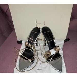 Black Suede Studio Talia Heel Pointy Sandal in Silver Gold 39 New with Box Women