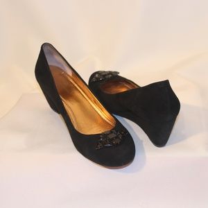 BCBGeneration suede wedges with jewel embellishment. 9.5 M Leather upper.