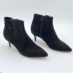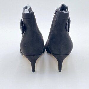 Black Suede Women Pointed Toe Ankle Boots Low Heel Strappy Buckle Dress Shoes