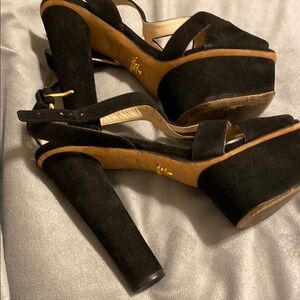 Elegant black suede heels perfect for any occasion. These stylish shoes offer comfort and sophistication.