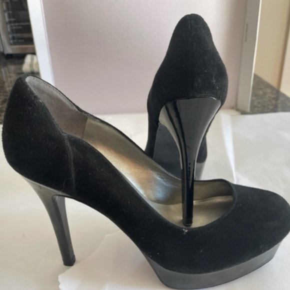 Guess 4" black suede and patent leather pump heels. Never worn. Size 7.5