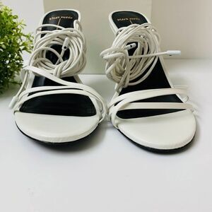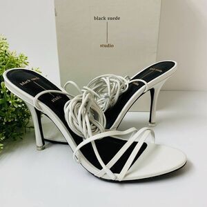 Black Suede Studio Leandra Ankle Strap Heels Sz 39EU /US9 White Leather Open Toe