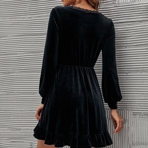 Black Surplice Lace Velvet Ruffle Mini Dress