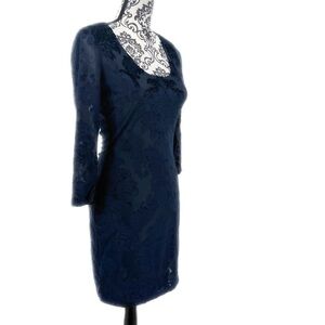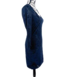 Black Swan Elegant Navy Velvet Burnout Bodycon Dress, S