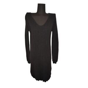Black Sweater Dress V neck 100% Superfine Merino Wool Size Small