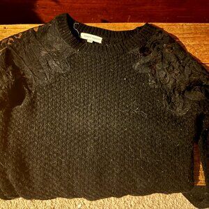 This sweater is slightly crop-length but not a true crop-sweater. It's super cute and warm, I just don't like the fit anymore. The brand is Honey Punch.
