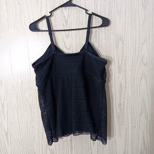 Black Swim Tankini Top Faux Fly Away Front Flowy Ruffled Crochet Size 2XL