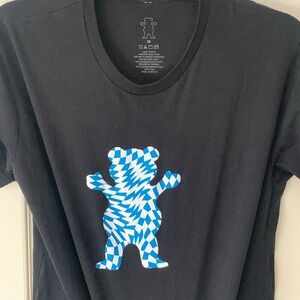 Black T-Shirt with Blue and White Bear Graphic Grizzly Griptape Size Medium