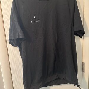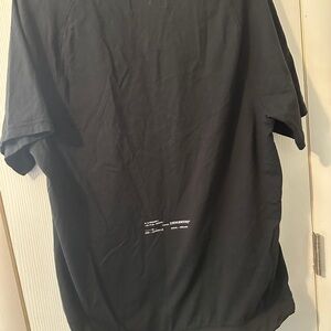 Stylish black t-shirt featuring a white logo design. Perfect for casual wear.