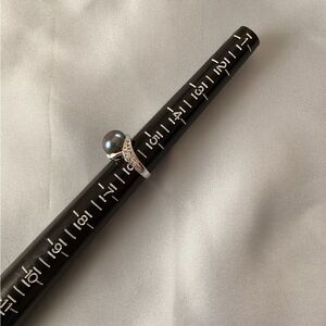Sterling Silver Black Tahitian Cultured Pearl Ring. Size 6. Well made in a nice sturdy sterling silver setting, with a large impressive 10.79 mm button pearl, and white zircon stones. Inside marking “LUC 925 CN” by Lucoral Co, NY. This would make a perfect gift for someone special. I would keep it for myself if it had been my size. This ring is absolutely gorgeous! Excellent condition and Smoke free.