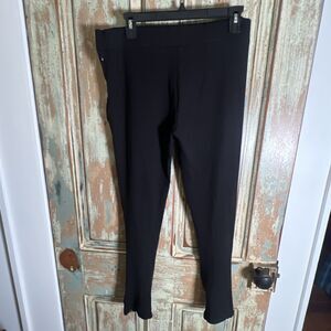 Black Takara Pull On Pants Matte Black Sequins On Front Black L . These black on black leggings style pants are subtle Glam! The Matte nature of the sequins down the front just make these extra cool. I see no evidence these pants have ever been worn. When laid flat, the Waist measures about 17 inches, and the inseam measures about 26 inches. Please see photos. Mob wife!