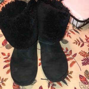 Tall black Ugg boots folded over. Worn but in decent condition!