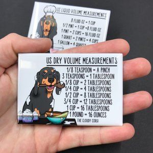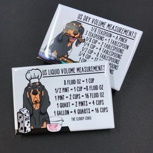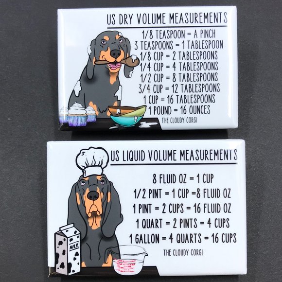 This cute, magnet set contains 2 high quality handmade magnets. There is a dry conversion chart on one magnet and a liquid conversion chart on the other magnet. Each magnet measures 2x3". Makes a perfect gift for Christmas, Mother's Day, Valentine's Day and birthdays!