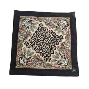 Black Tan Tiger Animal Print Handkerchief Scarf Bandana Made in USA RN14193 O