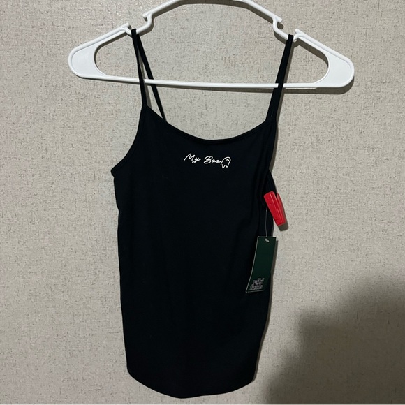 Stylish black top by , perfect for any occasion. Features a sleek design with comfortable straps.