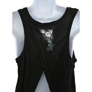 Black Tank Top Small Cross Back White Rose Print goth whimsygoth punk Y2K