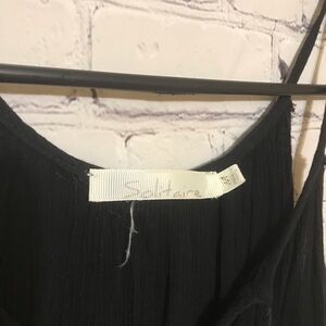 This black tank featuring elegant gold designs and tassels has a fun boho vibe.