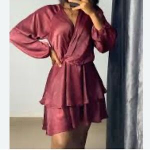 Black Tape Burgundy Mini Fit & Flare Dress(Size Medium)