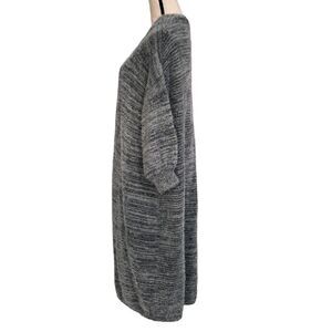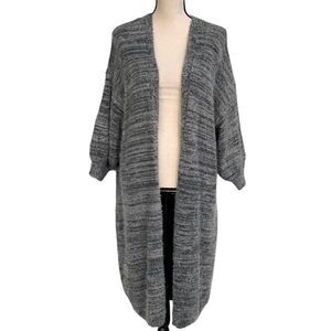 Black Tape Plus SZ X Eyelash Cardigan Open Front 3/4 Balloon Sleeve Stretch Gray