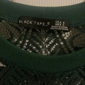 Description: Black Tape Lace top. Short sleeves. Scallop trip