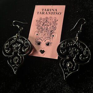 Black Tarina Tarantino dangle statement earrings with rhinestones