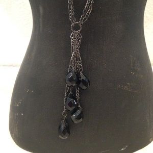 Blackened silver double chain 16" adjustable necklace with black facet cut bead pendant. Excellent condition.