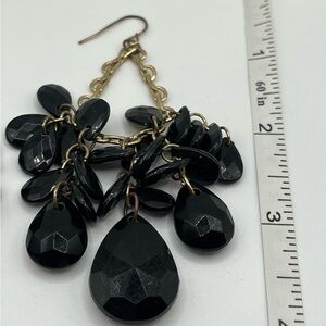 Black Teardrop Beaded Chandelier Earrings with Gold Tone Chain