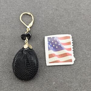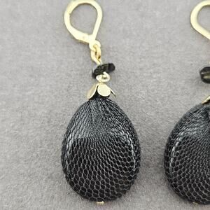 Black Teardrop Beaded Gold Tone Earrings Dangle Netted Dark Siren Mermaidcore