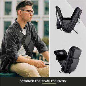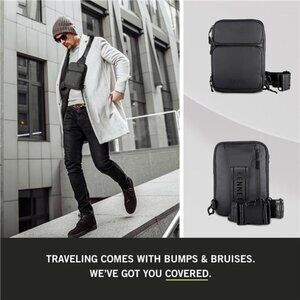 Black Tech Crossbody Bag Men Lightweight Durable Tablet Travel Shoulder Bag