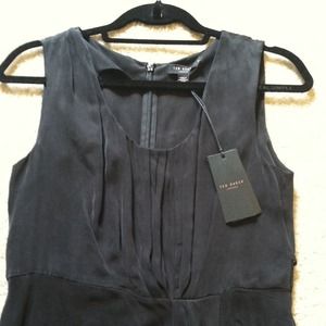 Dressy black Ted Baker rouching top. Made of 100% cupra. Zipper back. Could be worn as short dress. Comes without belt.