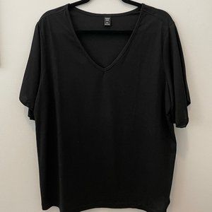 Black tee shirt with flowy short sleeves. Never worn. Size 2X.