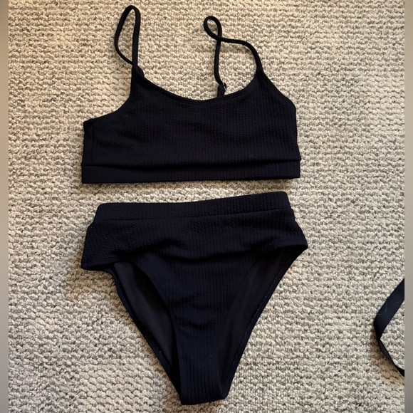 Stylish black textured bikini set. Includes top and bottom.