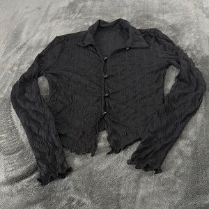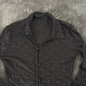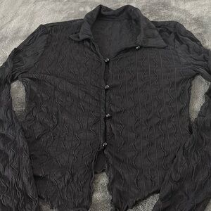 Stylish black textured cardigan with button-up front. Perfect for layering.
