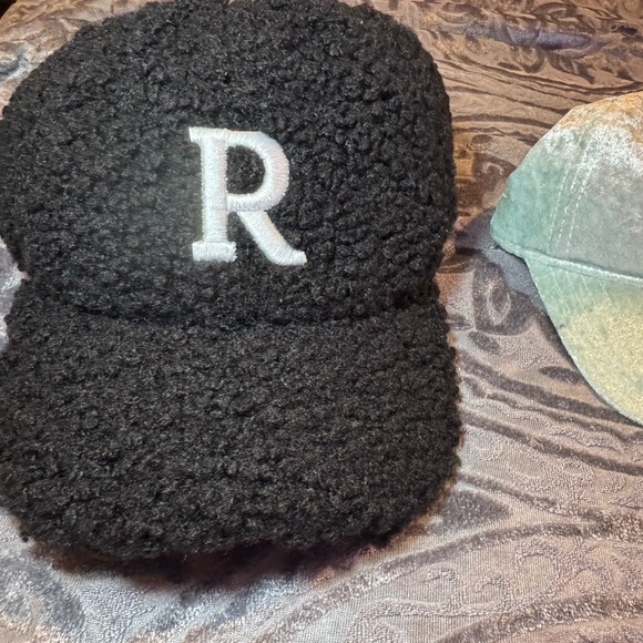 Stylish black textured cap featuring a bold 'R' embroidery in white. Perfect for casual wear.