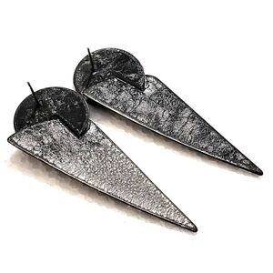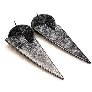 Add some retro charm to your jewelry collection with these black textured metal elongated triangle drop earrings. These earrings feature a geometric design that perfectly captures the beauty and art of the 90s fashion and costumes.