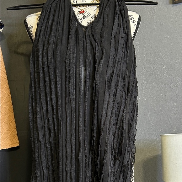 Lightweight vertical ruffle textured dress. Soft, flowy fabric. Versatile styling for day or night.