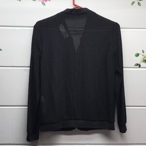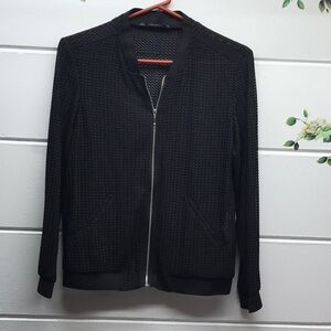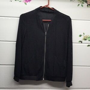 Elevate your style with this chic black textured jacket. Perfect for any occasion, this jacket offers both comfort and elegance.