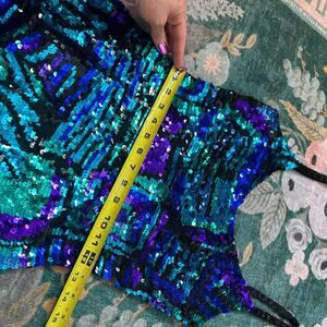 This elegant womens dress in a beautiful blue and purple hue features intricate sequined and beaded detailing that will surely make you stand out in any event. Whether you're heading to a cocktail party or a formal dinner, this dress is the perfect choice for making a stylish statement effortlessly.