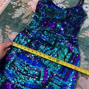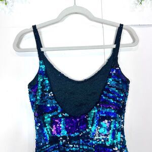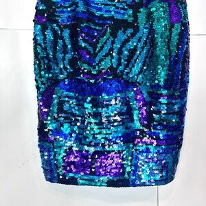 Black Tie By Oleg Cassini Mini Dress Womens Size 4 Blue Purple Sequined Beaded