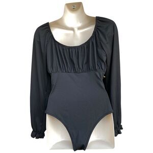 Black Tie Front Long Sleeve Bodysuit Sz S Whimsigoth Coquette Chic Basic Stretch