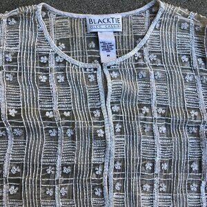 Black Tie Oleg Cassini Beaded Jacket M Women's 100% Silk Beige Sequined Designer