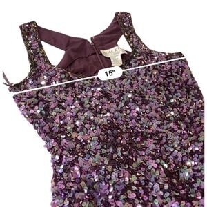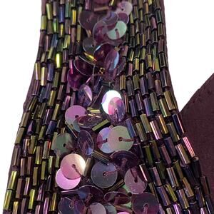 The Black Tie Oleg Cassini VINTAGE Sequin SILK Cocktail Tank Dress in size 8 is a stunning piece from the 1980s. NEW & unworn! This sleeveless dress features a sheath style with sequin detailing, perfect for a cocktail occasion. The rich purple color adds a touch of elegance and glamour.