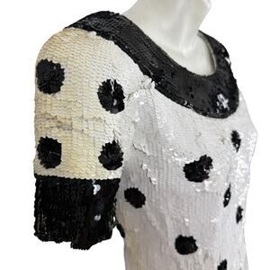 Black Tie Oleg Cassini Vintage 100% Silk Allover Sequin Dots Formal Dress sz 10