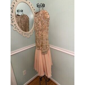 Black Tie Oleg Cassini beaded sequin gown Midi Peach Formal 8 Flowy Glam