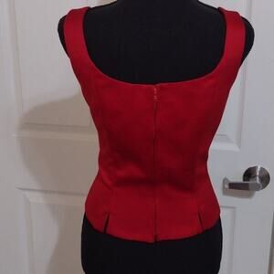 Black Tie business casual red Top zips up in back and clasps women's size 8P