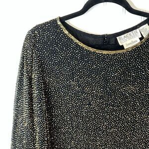 Black Tie CASSINI Beaded 100% Silk Evening Top Women’s Large Black Long Evening