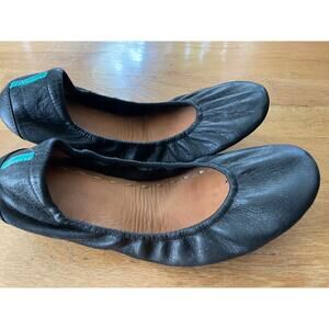 Black Tieks size 9 EUC leather ballet flat shoes foldable excellent condition - no scuffs on leather