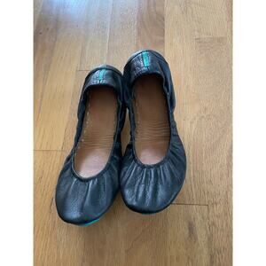 Black Tieks size 9 EUC leather ballet flat shoes foldable