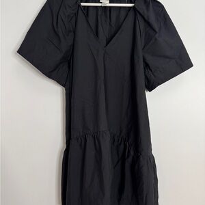 Black Tiered Mini Dress Size Small Minimalist V-Neck Babydoll Style